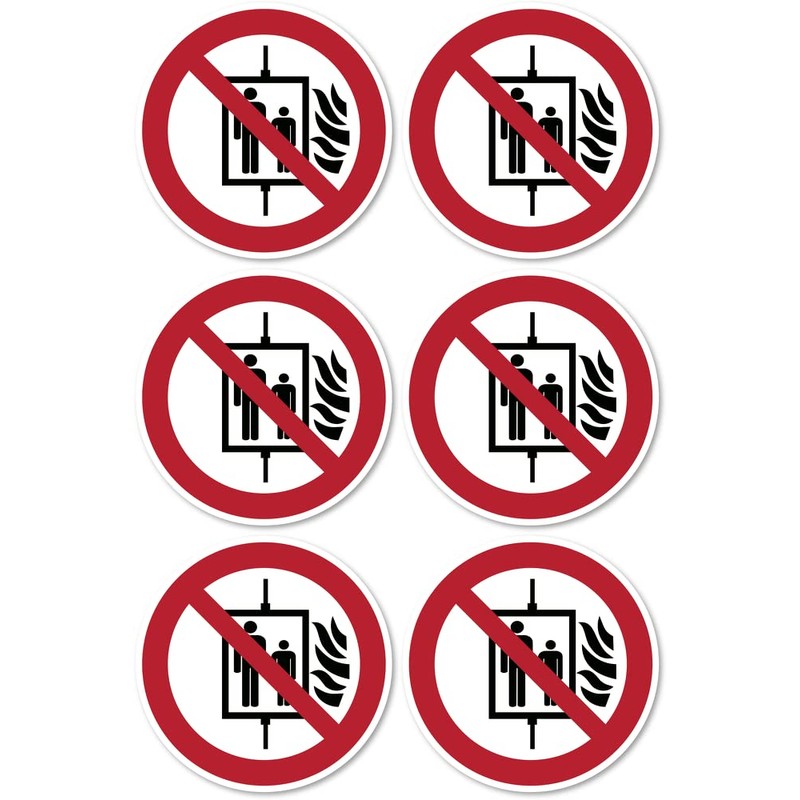 Do not use lift in case of fire, prohibition sign: P020 - DIN EN ISO 7010 / ASR A1.3 - sticker: diameter 5 cm, pack of 6