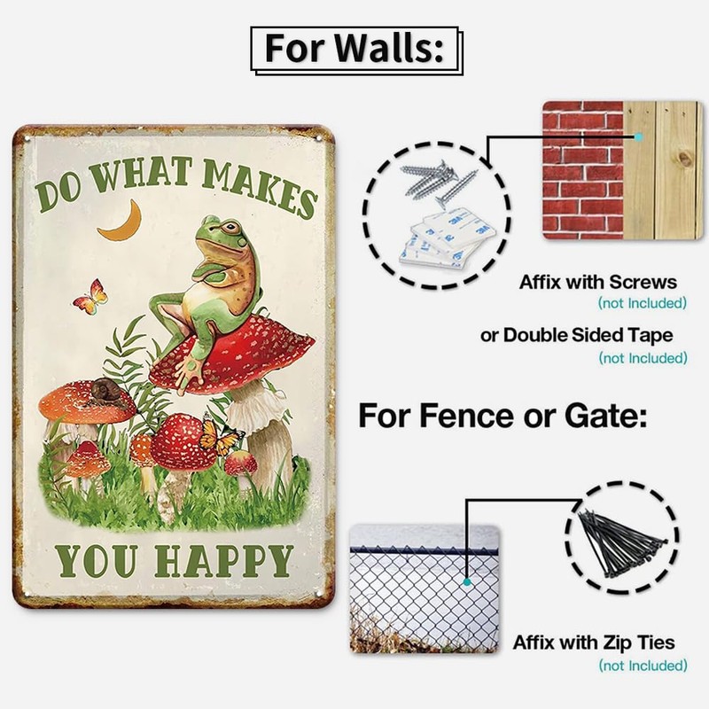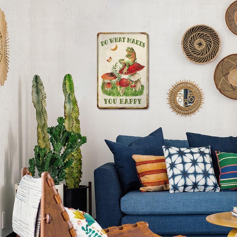 - Funny Hippie Frog Decor- Our hippie decor tin sign features a bold and inspiring message, " Do What Makes You Happy" to remind you of the value of free hippie life. It has an inexplicable charm beyond its gentle and positive message. polished look but it's so cute as is and it definitely makes people smile daily.