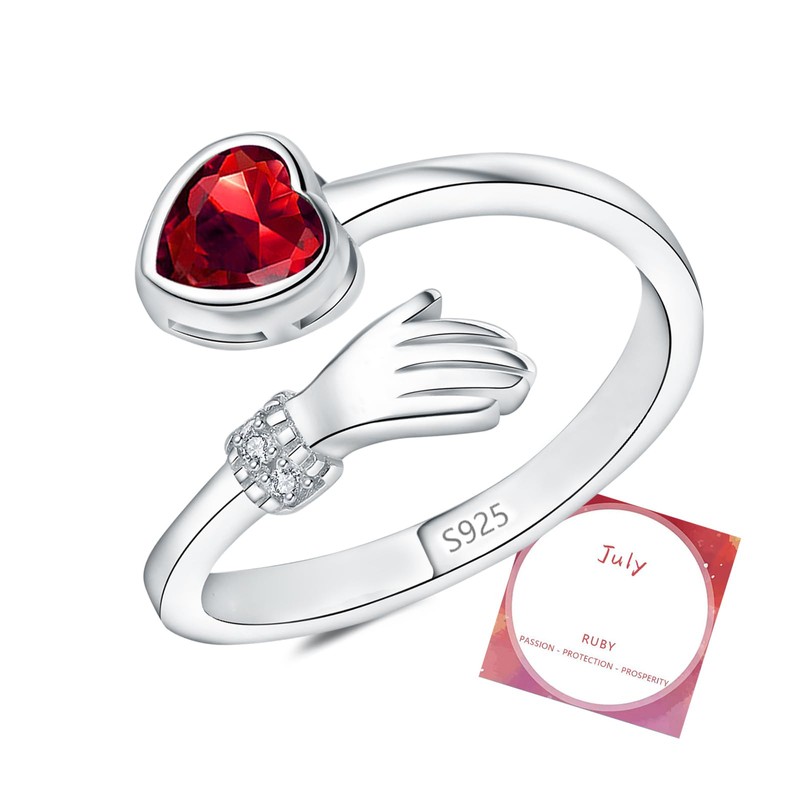 DOA Adjustable Sterling Silver Open Rings for Women, Hug July Birthstone Rings Women, Red Thumb Ring with Cubic Zirconia
