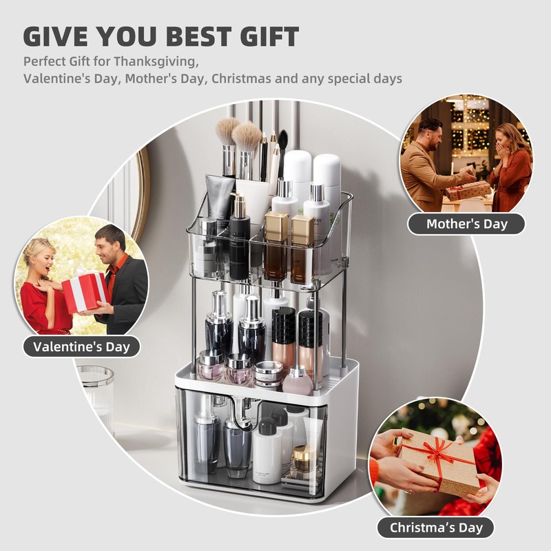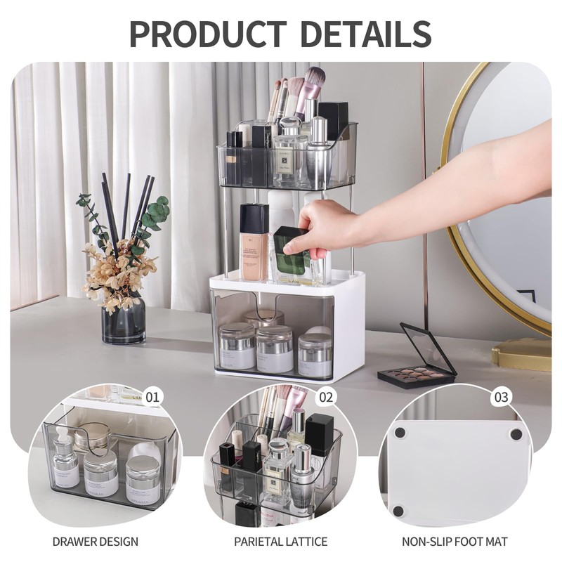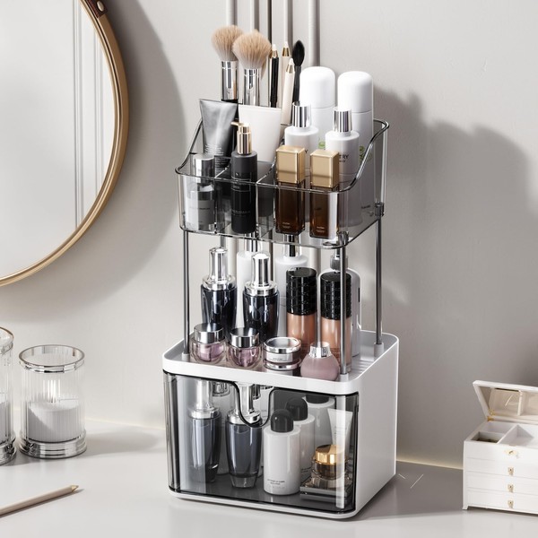DOADW 3 Tier Makeup Organizer Countertop with Drawer - Bathroom Makeup Organi...