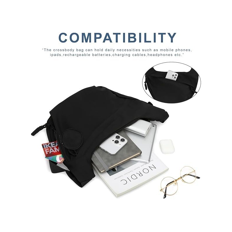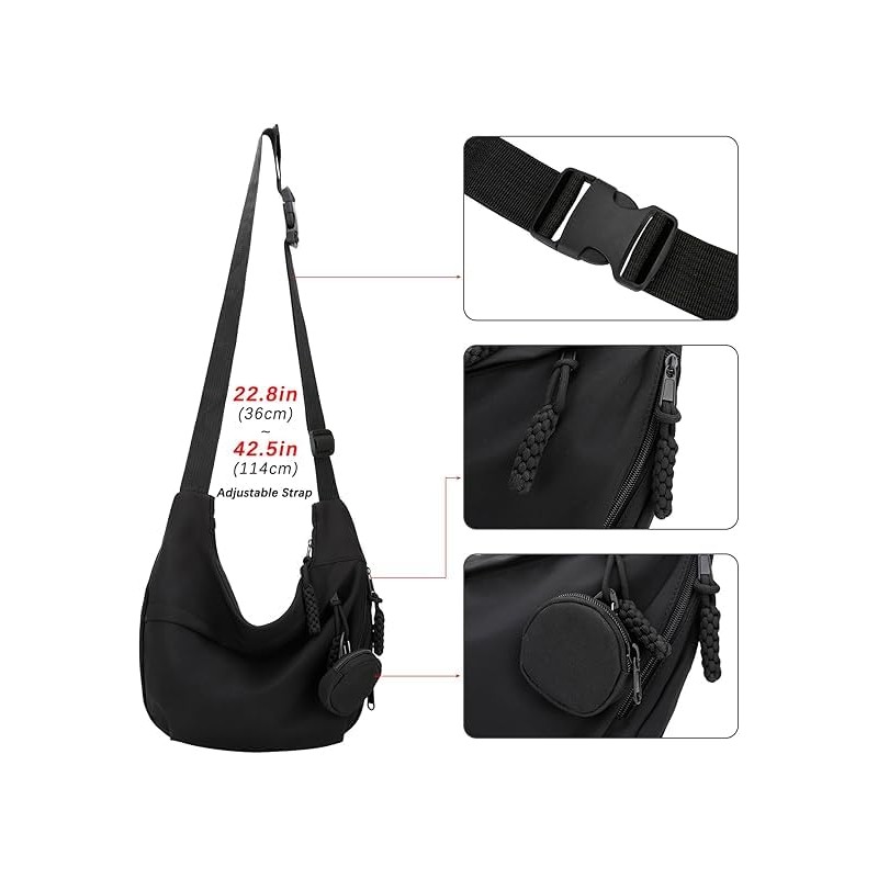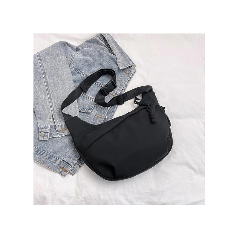 DOB SECHS Nylon Crossbody Crescent Hobo Bag for Women Men with Earphone Pouch, Half-moon Messenger Bags Cross Body Shoulder Sling Bag, Adjustable Strap, Multi-pockets Casual Dumpling Bag, Black