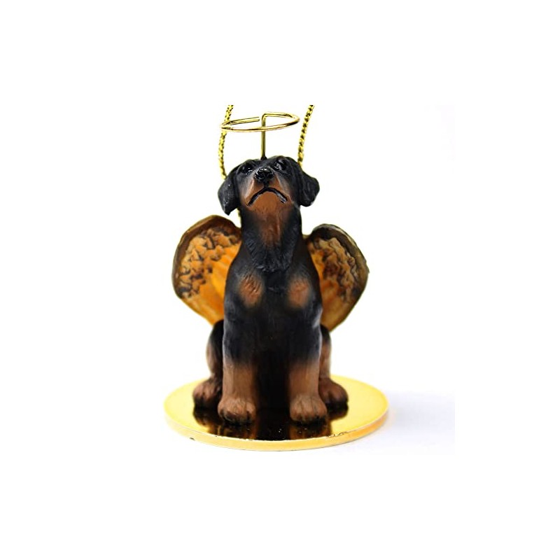 Doberman Pinscher Angel Dog Ornament - Uncropped Ears - Black &