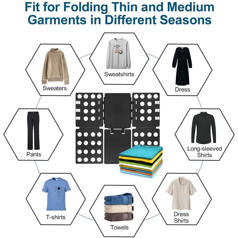 - 【Ahorro de Espacio】Los paneles plegables ajustables sostienen prendas desde camisetas hasta abrigos. Dobla toda la ropa al mismo tamaño, ahorrando mucho espacio en armarios y cajones. Hace que el plegado sea más fácil, rápido y ordenado, pliega y organiza la ropa en segundos, brinda más espacio en su armario, cajones y maletas para mantener sus armarios y cajones organizados.