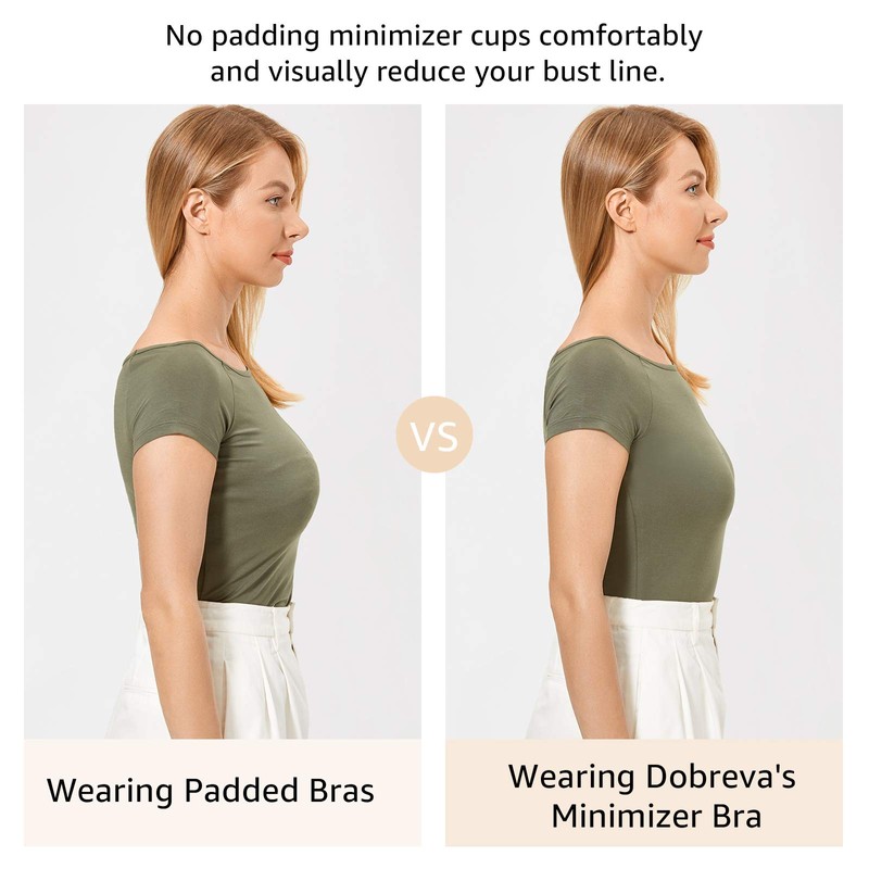 DOBREVA Women's Lace Full Coverage Minimiser Bra Unlined Underwire See Through Plus Size Bra Parchment 38E