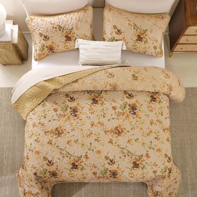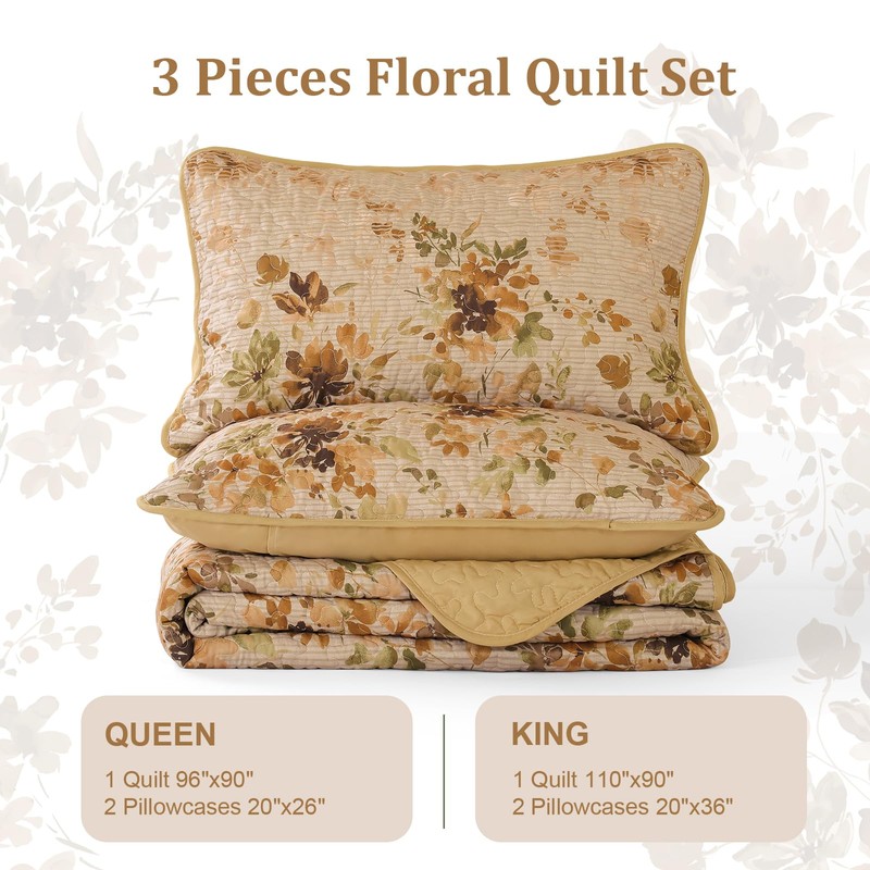 - 【What You Can Get】The queen quilt bedding set includes 1 quilt (96"x90") and 2 pillowcases (20"x26"). The khaki floral bedding set is an ideal gift for teens, girls and women as a birthday gift or special holiday gift.
