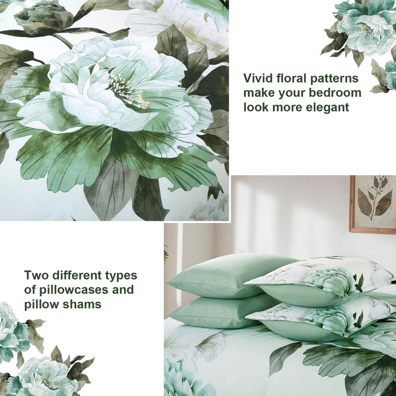 - Exquisite Craftsmanship: This floral bed set uses whole piece of premium and well-distributed polyester as the inner filling which makes the comforter more soft and warm. The green floral bedding set uses a excellent stitching technology to prevent the filling from shifting and clumping.