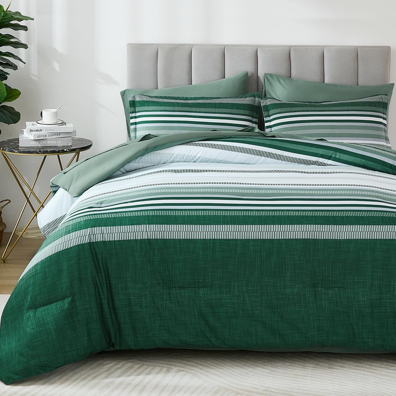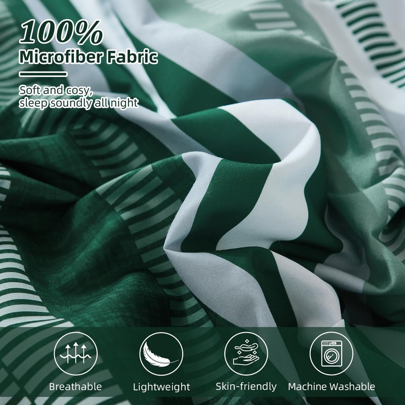 - 【Excellent Craftsmanship】: The green comforter use the whole piece of microfiber as the filling of the comforter to keep the beauty and prevent the filler from shifting or clumping. The fitted sheet can fit the mattress up to 14 inch. Envelope pillow cases are easy on and off. All allow for a comfortable night’s sleep.