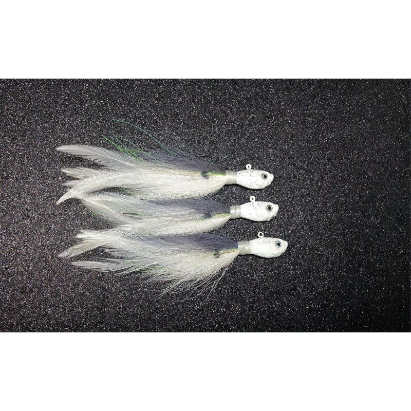 The lures are dressed with florescent Krystal flash to accentuate the lifelike swimming action of the bucktail.