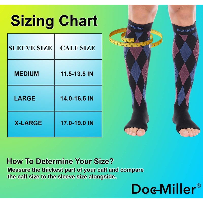 • COMODIDAD INCOMPARABLE: El ajuste y la construcción de nuestras mangas garantizan que el ajuste sea cómodo contra las piernas, sin molestias o deslizarse durante la actividad. Proporcionamos una amplia selección de tamaños, diseños, colores unisex y varios patrones de color. Nuestros diseños incluyen medias de punta abierta, regular, apoyo a arcos, tobillo, coderas y pantorrilleras. Ofrecemos calcetines de compresión grado médico (30-40mmHg) o menos. Vea la descripción para más información.