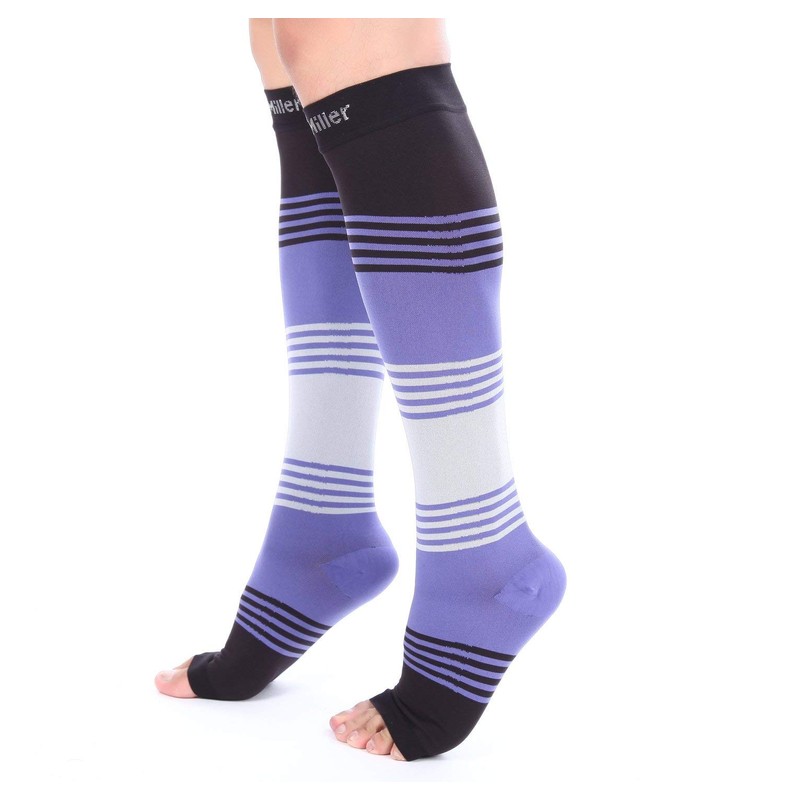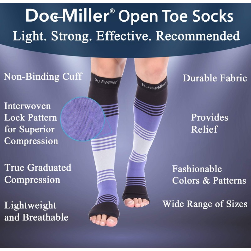 Doc Miller Calcetines de Compresión de Punta Abierta 20-30 mmHg Medias de Compresión, Recuperación, Dolores, Varices, Mangas para Pantorrillas (Negro Morado Gris, Pequeño)