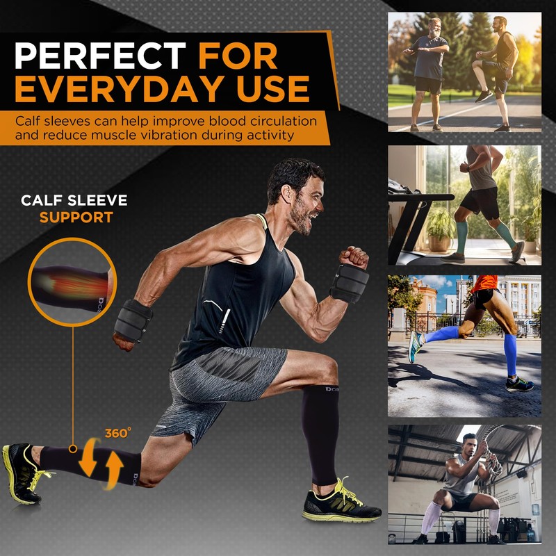 Doc Miller - Compression Calf Sleeve for Short Men & Women, Medical Grade, 15-20mmHg Graduated Support for Running, Calf Tear, Shin Splints, Knee High, Black Calf Sleeves, Medium Size, 1 Pair, Petite