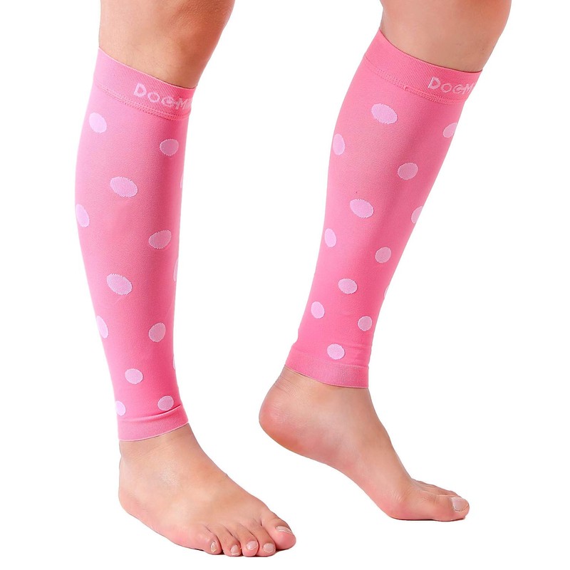 Doc Miller Manga de Compresión Para Pantorrillas (1 par) 20-30 mmHg Medias de Compresión Mangas Para Ejercicio, Recuperación, Dolor, Varices y Calambres en Piernas (Rosa Blanco, Mediana)