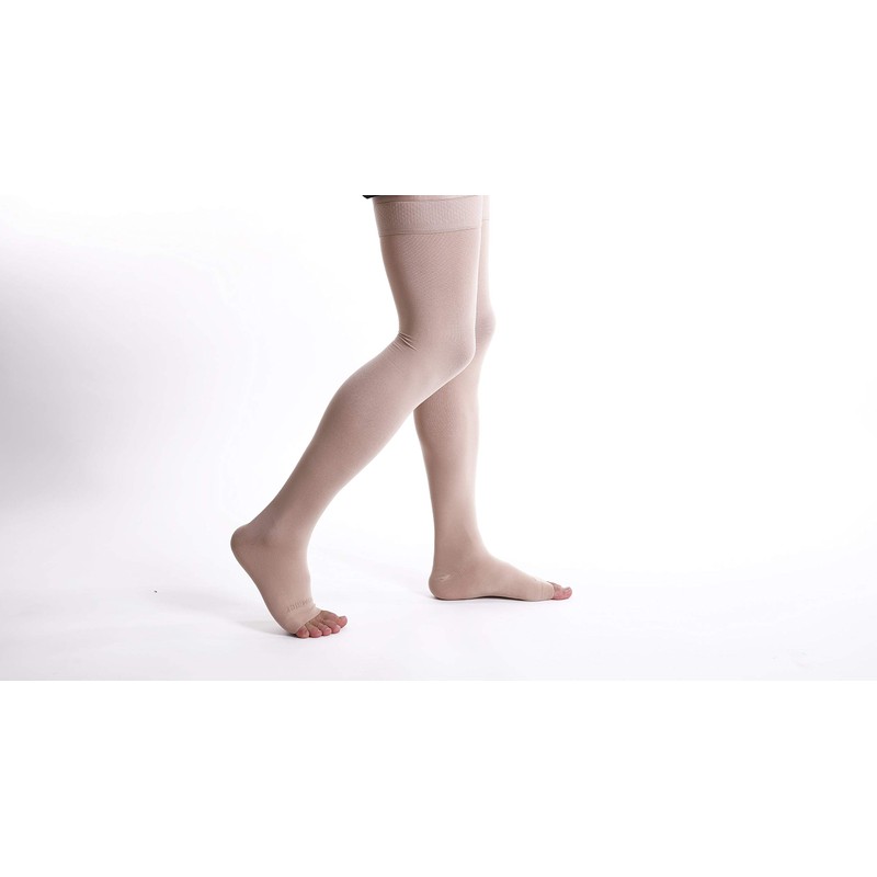 - Los calcetines de compresión de alto muslo de punta abierta para mujer son perfectos para enfermeras, médicos, anfitrionas de aire, esteticistas y para trabajos que requieren estar de pie. La manga de compresión para las piernas soporta el embarazo y proporciona alivio de calambres en las piernas y espinillas.