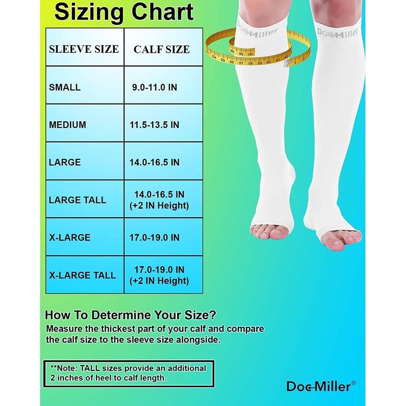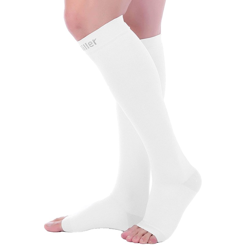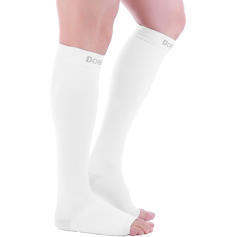 Doc Miller Open Toe Compression Socks 1 Pair 20-30mmHg Support (White, S)