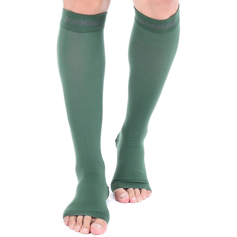 Doc Miller Open Toe Compression Socks – 1 Pair Compression Socks Women & Men 20-30mmHg Support Stockings Travel DVT Shin Splints Varicose Veins Legging Medical Grade Nurse (Dark Green, Small)