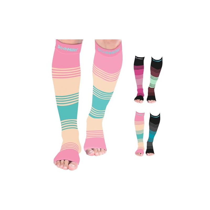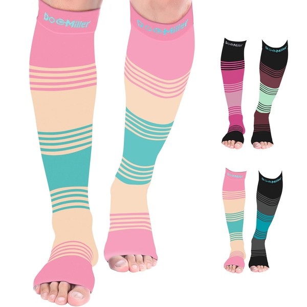 Doc Miller Open Toe Compression Socks, 15-20mmHg, Toeless Socks, Support Circulation, Shin Splints, Post Op, Medical Grade, Knee High, Dress Compression Socks for Men & Women