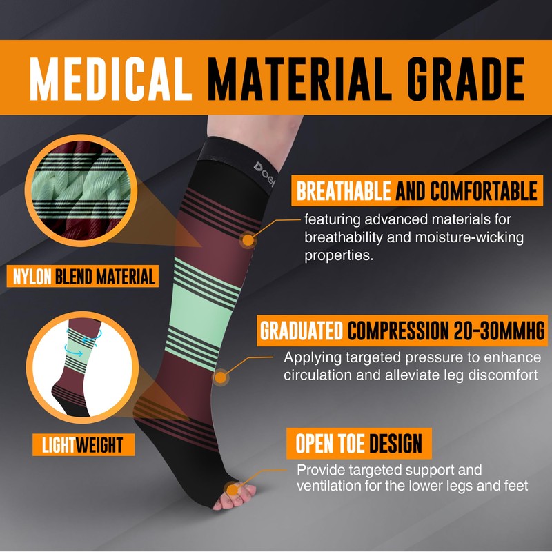 - Open Toe Design: Allows for flexible wear; supports foot movement while providing targeted compression for daily comfort