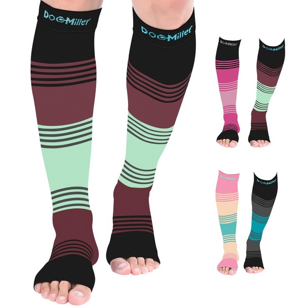 Doc Miller Open Toe Compression Socks, 15-20mmHg, Toeless Socks, Support Circulation, Shin Splints, Post Op, Medical Grade, Knee High, Dress Compression Socks for Men & Women
