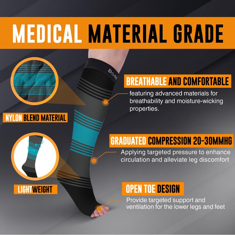 - Open Toe Design: Allows for flexible wear; supports foot movement while providing targeted compression for daily comfort