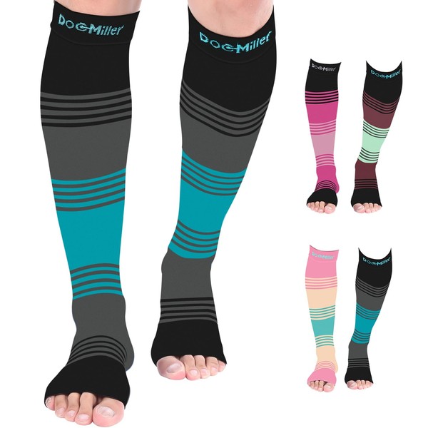 Doc Miller Open Toe Compression Socks, 15-20mmHg, Toeless Socks, Support Circulation, Shin Splints, Post Op, Medical Grade, Knee High, Dress Compression Socks for Men & Women