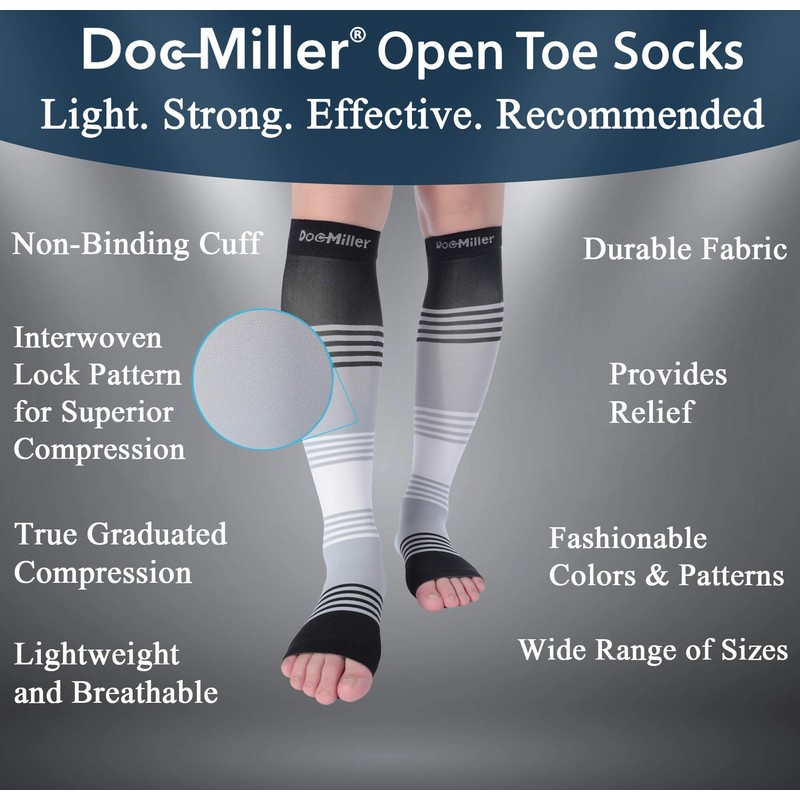Doc Miller Open Toe Compression Socks Women and Men 20-30mmHg, Toeless Compression Socks Women, Support Shin Splints, Calf Recovery, Varicose Veins, 1 Pair
