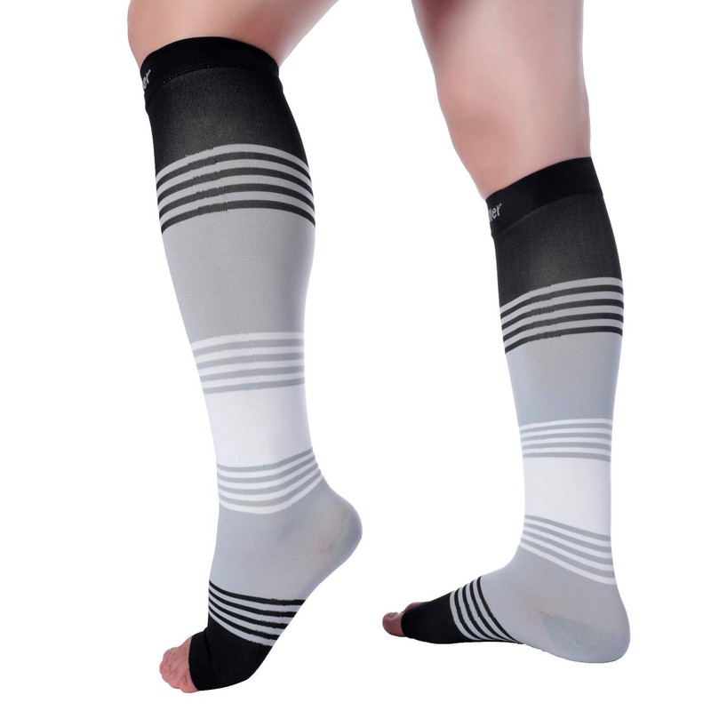 - Exceptional value: Get a pair of 20-30mmHg black toe out compression socks knee high at a great price. These socks are prescribed by many doctors because of its graduated compression and comfort