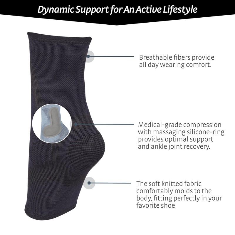 Doc Ortho Compression Ankle Brace Sleeve with Malleolus Pads, Breathable Pull-On Support, Single Unit