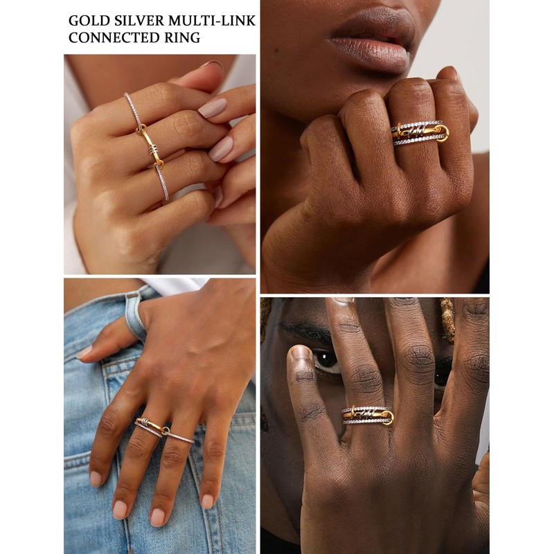 - 【Mixed Metals Stack Rings】 The stackable ring consists of three rings, two silver&one gold Or two gold &one silver connected by a gold vein ring, creating a sleek, minimalist ring set that is sure to make your fingers look distinctive and sparkly