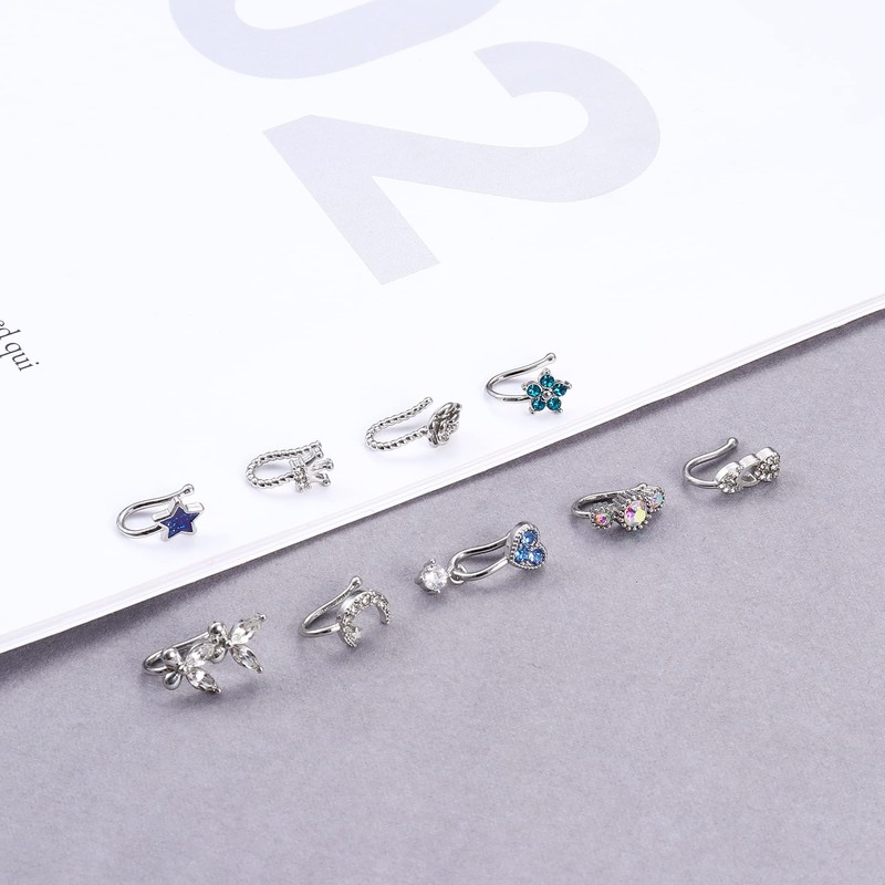 - Dochais 9 Pieces 316L Stainless Steel Nose Studs, C-shaped Silver Spiral Nose Studs with Cubic Zirconia, Nose Piercing Rings for Women Men 20G