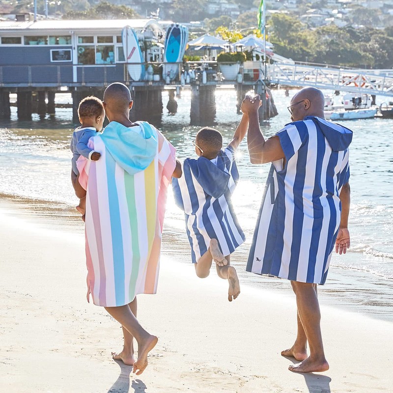 - PONCHO FOR ADULTS - The Dock & Bay adult poncho is part of the cabana collection of towels. The ultimate portable changing robe with style, deep pockets, and quick-drying capabilities, it's big enough to change under while drying yourself