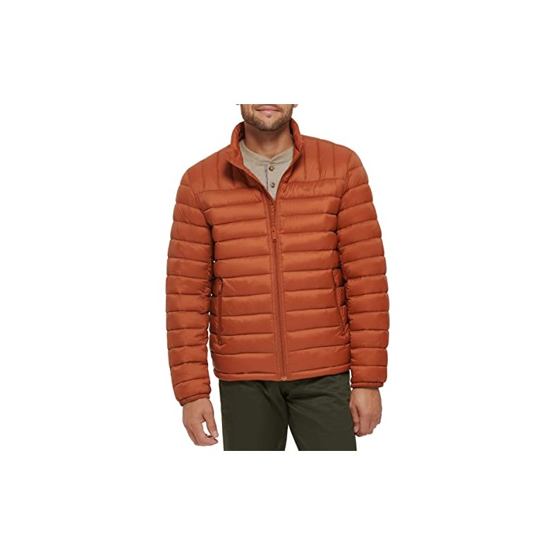 Dockers Men's Classic Ultra Loft Packable Puffer Jacket, New Orange, Large