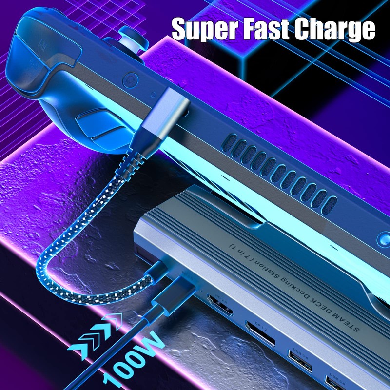 - 100W fast charging,no power loss:This Steam Deck docking station supports 100W Max power delivery,which is sufficient to charge your Steam Deck at full speed when paired with the original charger. [Note: the MAX charging speed of Steam Deck is 45W ]