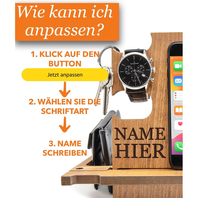 Docking Station personalisiert – Männer Geschenk Geburtstag – Organizer für den aktiven Mann – Graviertes Holz-Accessoire für Alltag & Beruf – Praktische Geschenkidee mit Stil & Struktur