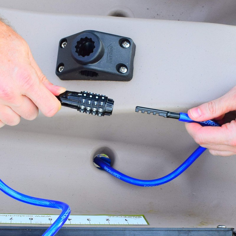 - Unique design. Unlike most security cables, the male end of the cable is the same diameter as the cable itself allowing the cable to pass through narrow spaces such as kayak and paddleboard scupper holes.
