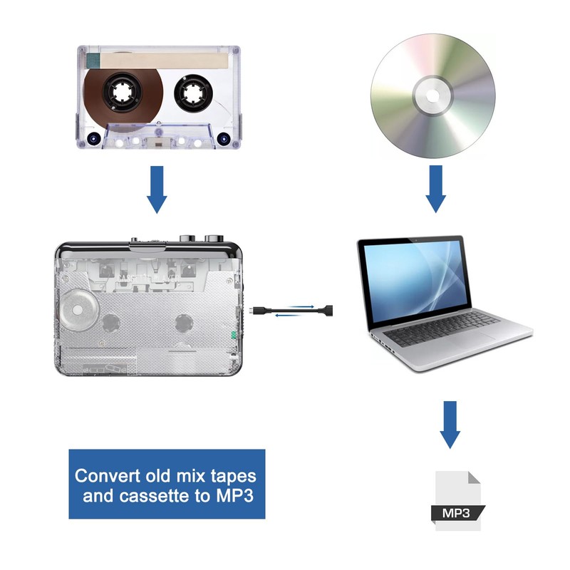 • You can easily convert your cassette tapes into digital MP3 format, preserving your favorite music for future enjoyment.