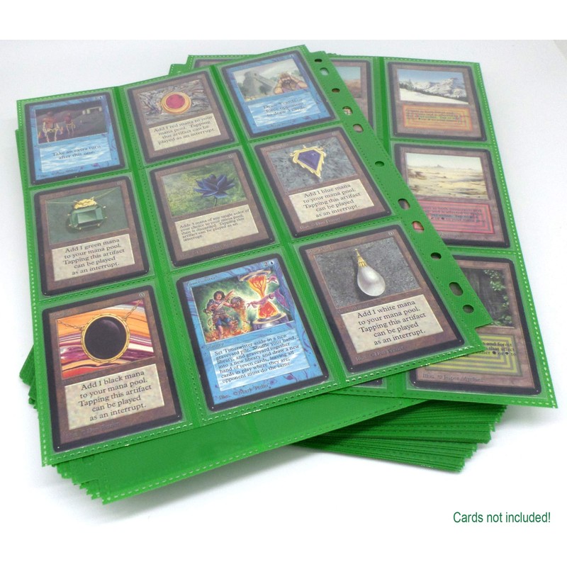 docsmagic.de 50 18-Pocket Pages Dark Green - Sideloading - 11 Holes - MTG PKM YGO - Folder Pages Dark Green
