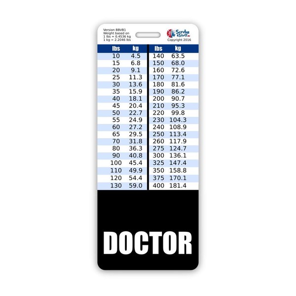 Doctor Badge Buddy Vertical w/Height & Weight Conversion Charts (Oversized, Black)