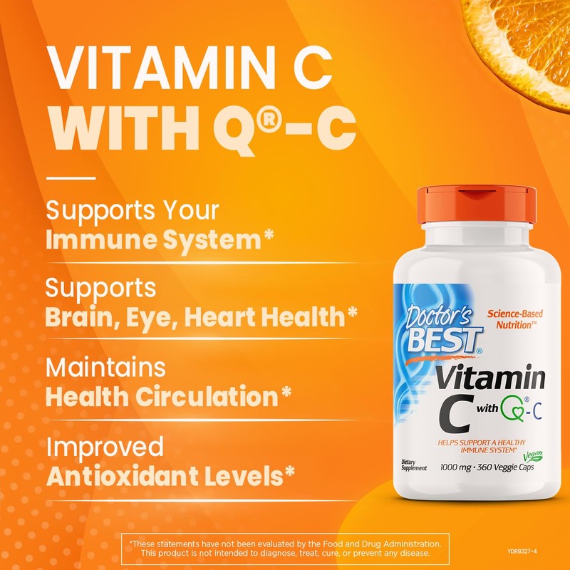 - TRUSTED AND PURE - 1000mg of Vitamin C with Q-C each serving. Gluten Free, Non-GMO, Soy Free, Vegan, Vegetarian. Doctor's Best is committed to the safety of all of our products, offering a clean and reliable supplement for your well-being.