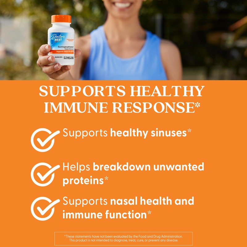 Doctors BEST Serrapeptase, 40,000 SPU, Supports Sinus Health, Non-GMO, Vegan 90 Veggie Caps