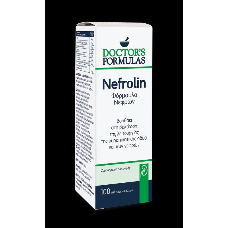 Doctor's Formula Nefrolin is a liquid dietary supplement with herbal extracts for the kidneys and urinary tract. With yava, Uva-Ursi bearberry, solidago, juniper, fumaria, red bilberry and cranberry with 30% proanthocyanidin