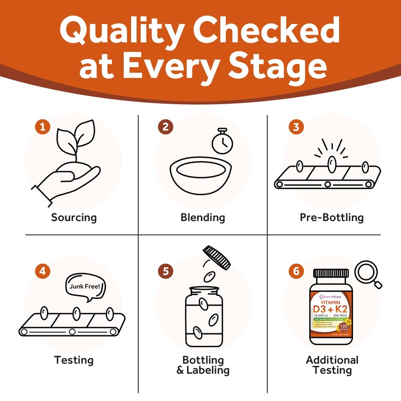 • Proudly Made in the USA: Our advanced strength formula is loaded with the highest grade & naturally sourced ingredients in a GMP certified facility in the USA. Doctor's Recipes Vitamin D3 + K2 is 100% pure, natural, NON-GMO with no soy, gluten and dairy.