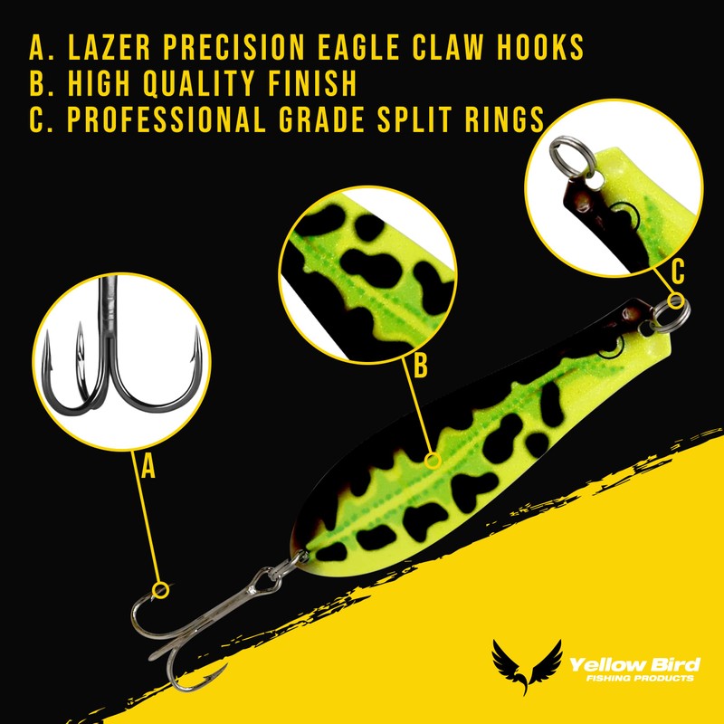 • They Have Premium Eagle Claw Laser Sharp Red Treble Hooks, 3x Strong. This Is The Suped Up Version Of Your Grandfather’s Spoon!