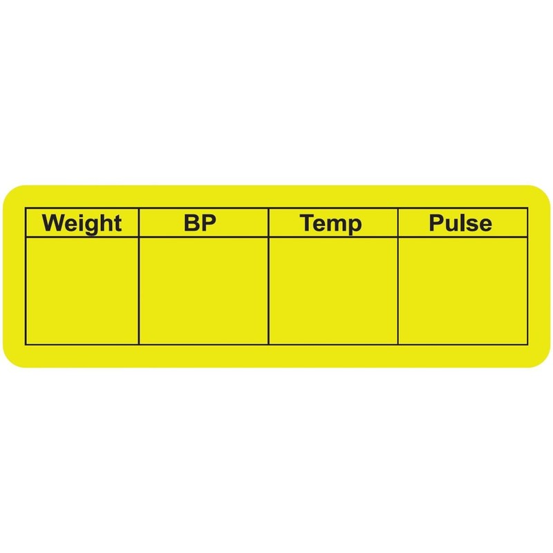 Doctor Stuff - File Folder Chart Labels, MAP3590, Weight/Blood Pressure, Medical Chart Stickers, Fluorescent Chartreuse/Black, 3" x 1", 250 per Box