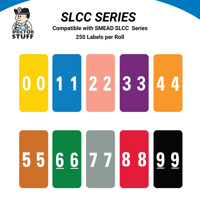 - PERFECTLY ORGANIZED: Doctor Stuff number labels are printed with bright colors to be compatible with SMEAD SLCC Series numeric color coded filing labels. They have a clear laminate to keep your labels clean and the colors bright - even with frequent handling.
