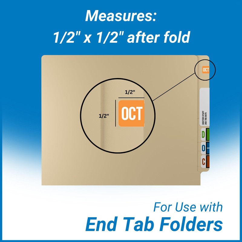 Doctor Stuff - File Folder Month Labels, October, Tab Products 1279 Match - A1279 Series Stickers, Orange, 1/2" x 1", 1000/Roll