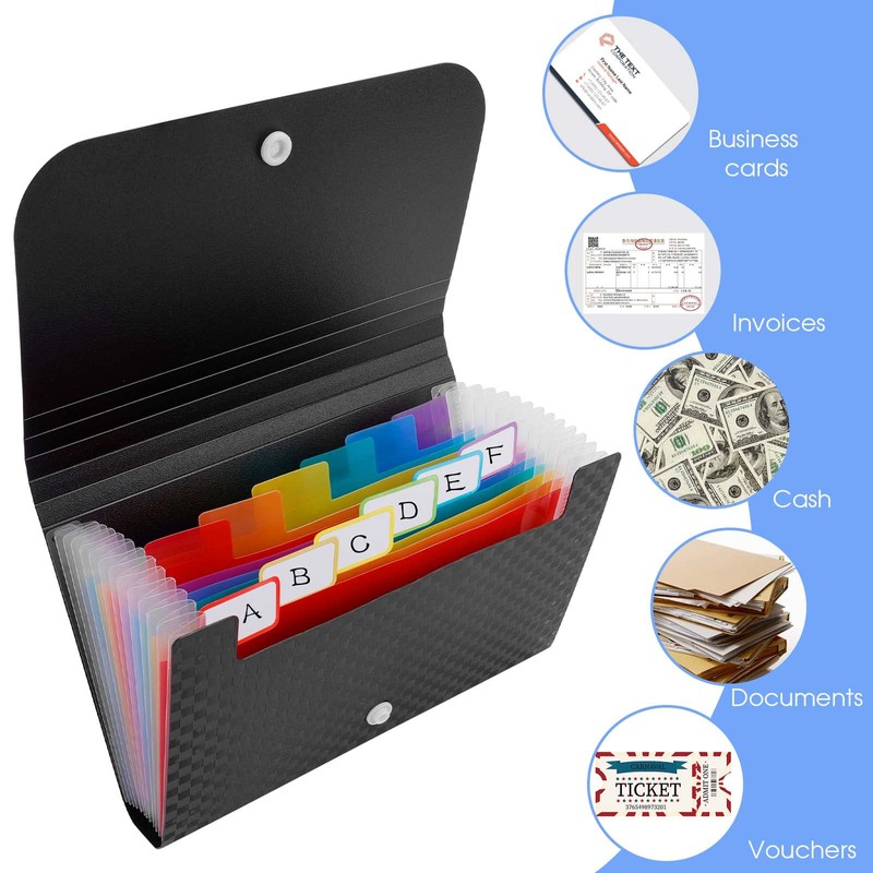 - Widely used: you can use the A6 expanding file to store bills, business cards, vouchers, certificates and much more for home, office, school and many other areas. The expandable organiser folders can also be used as unique gifts for your family, friends and children.