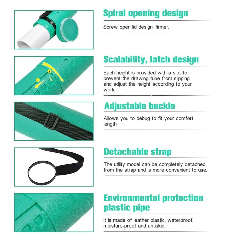 • Unlimited Use: The plastic tube could be used to storage and travel posters, blue prints, maps, documents, large photo prints, drawings, artwork, arrows, fishing rods, drum sticks, or whatever else you can imagine.