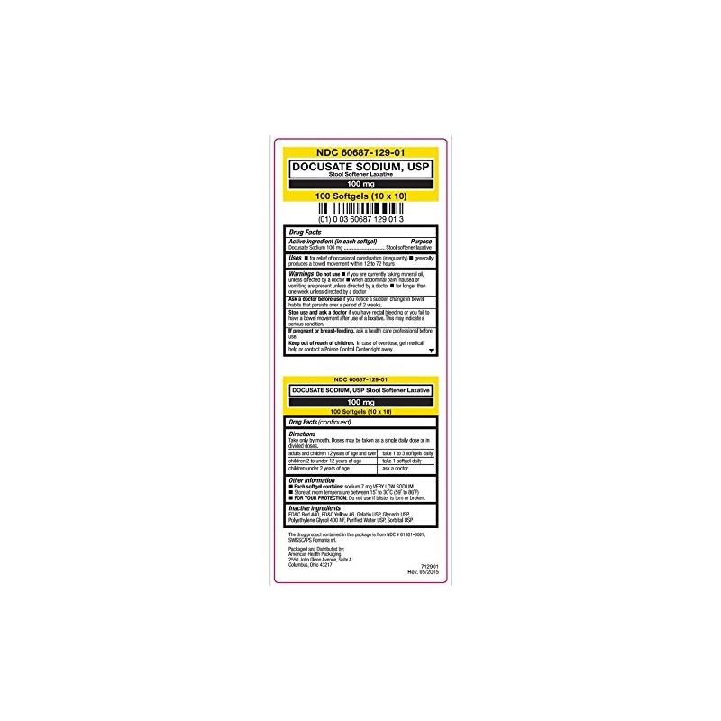 Docusate Sodium 100mg Softgels, Stool Softener Laxative, 100 Count Per Pack