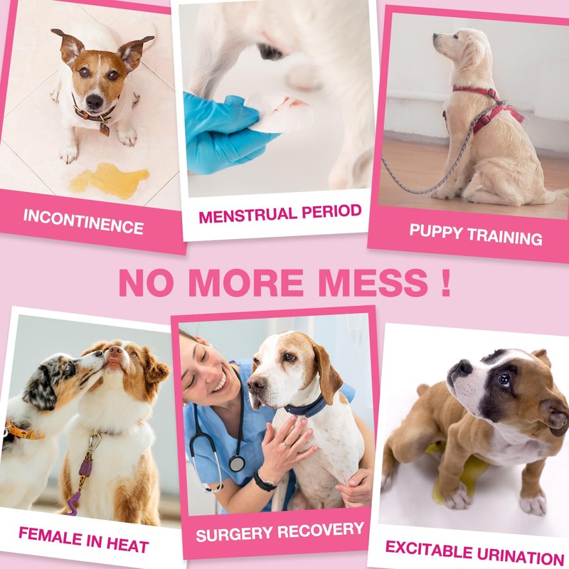 - Multipurpose: Best solution to your dog with menstrual periods, untrained puppies, dog marking, excitable urination, dog incontinence, and travel. Reduce the hassle of cleaning up messes, protect your floors, sofas, beds and keep your home clean.