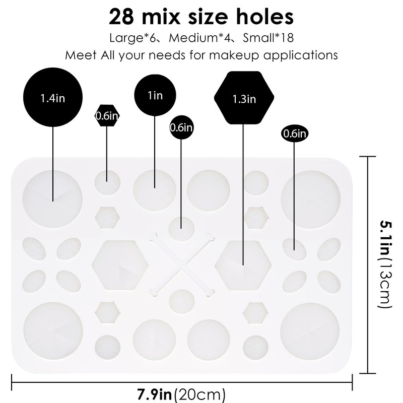 - The makeup brush holder drying rack with 28 different hole sizes which can be applied to your various type of brush sizes like a foundation brush, eye-brown brush, cheek brush, etc